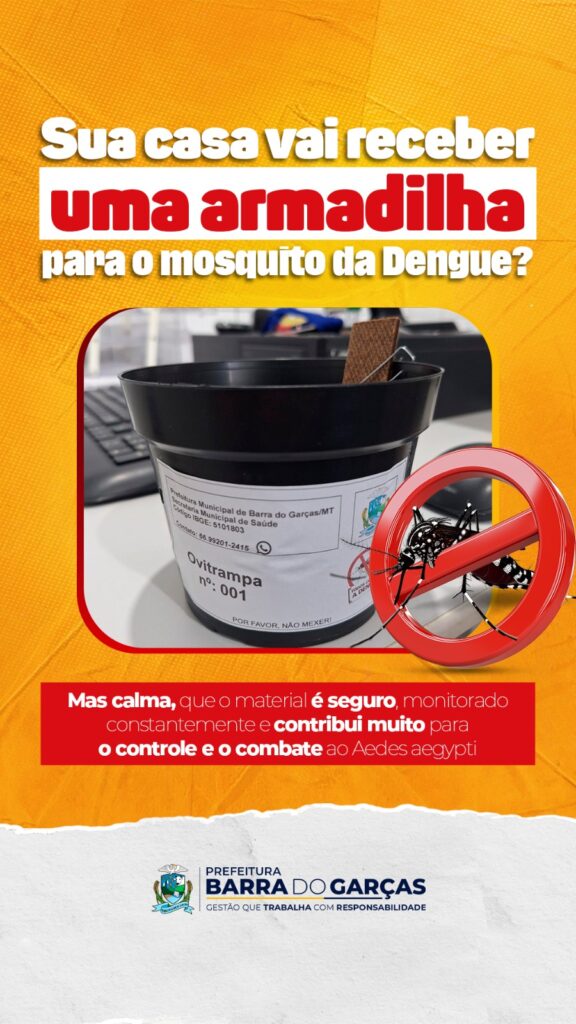 A Prefeitura de Barra do Garças, por meio da Vigilância em Saúde Ambiental, está instalando ovitrampas, que são armadilhas usadas no monitoramento e controle do Aedes aegypti. As armadilhas são instaladas em residências do município e, segundo a Vigilância, a colaboração dos moradores é fundamental para que esses dispositivos contribuam com o combate às doenças transmitidas pelo mosquito.